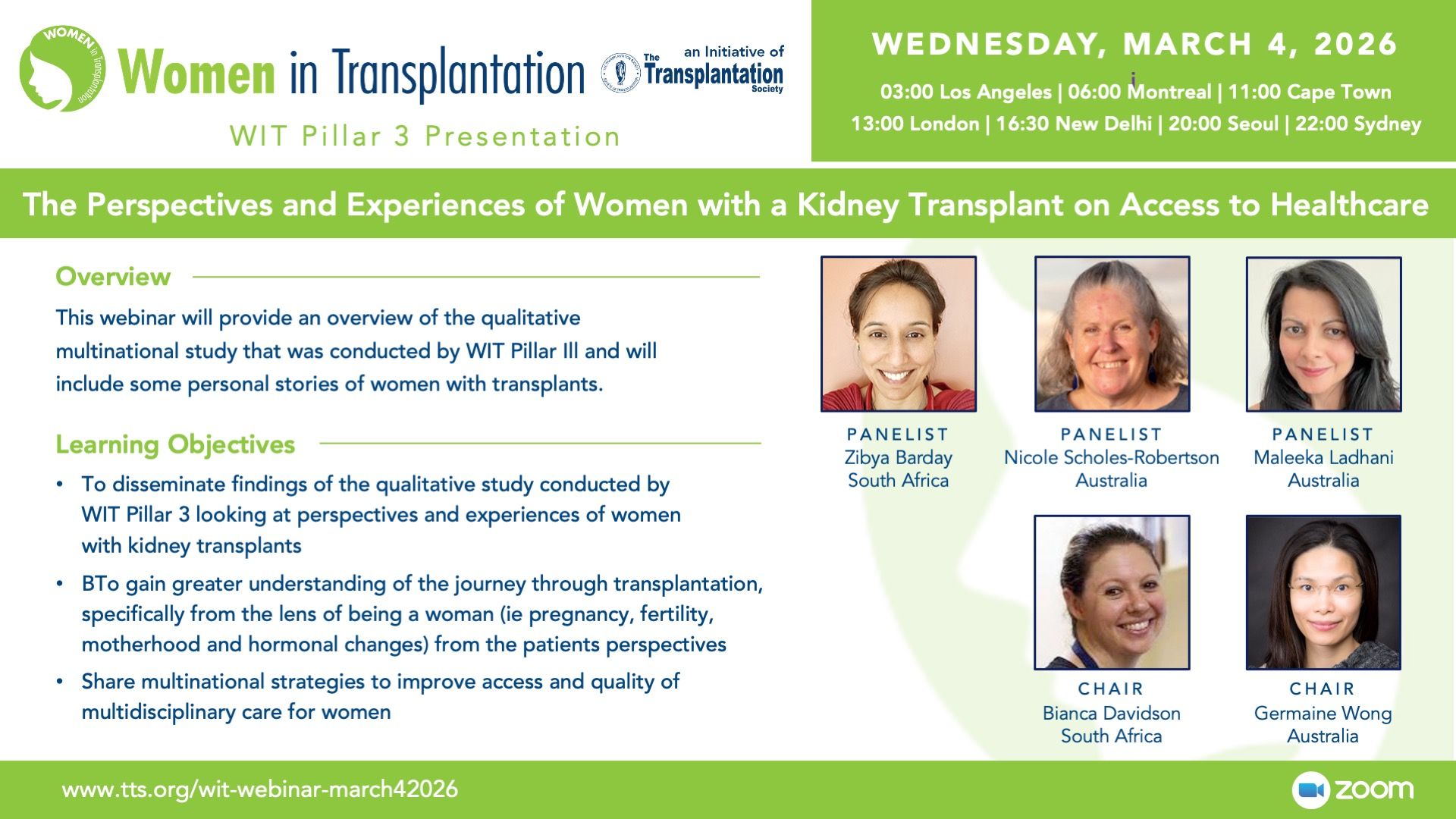 Speakers include: Dr. Mamatha Bhat, University of Toronto, and Dr. Navvy Kaur, Translational Medicine, Organ Health Medical Affairs, Natera; UCSF.